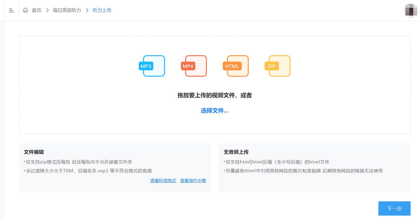 上传自己的听力资源