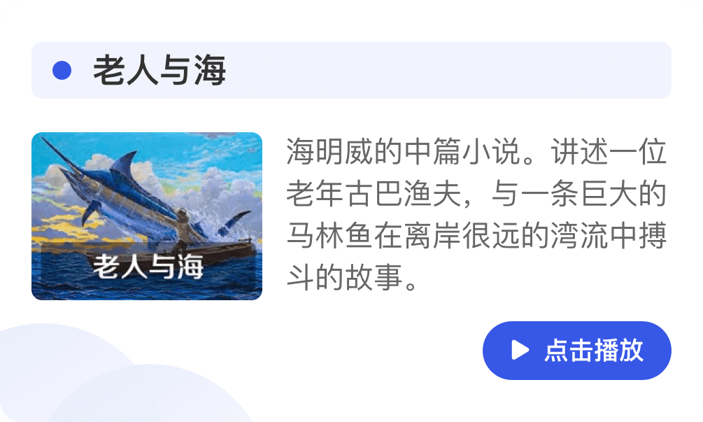 《老人与海》是美国作家海明威于1951年在古巴写的一篇中篇小说,于1952年出版。